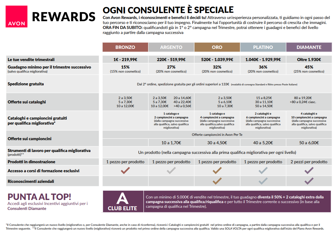 Per noi di Avon, ogni Consulente è speciale: per questo con Avon Rewards abbiamo voluto creare un piano che dia a ciascun Consulente i Guadagni, i Benefici e i Riconoscimenti che merita.